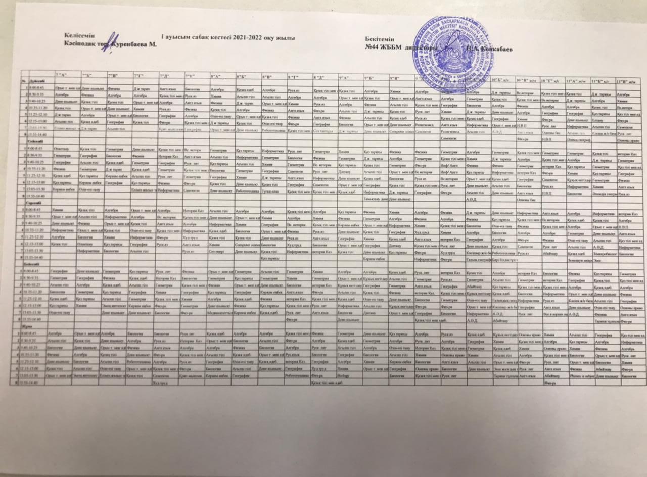 Сабақ кестесі 7-11 сынып » СШ №44 Плодосовхоз