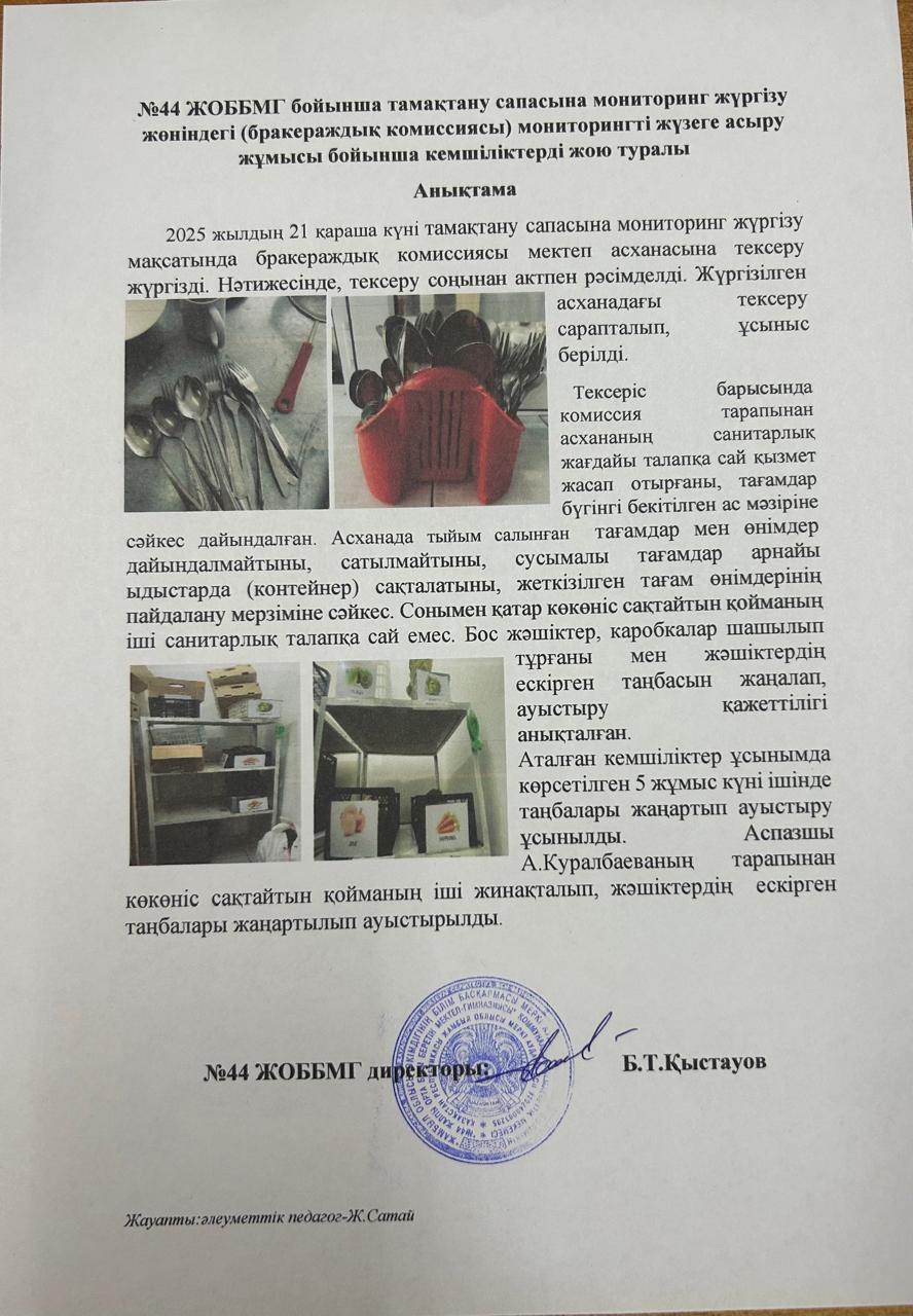 Бракеражды комиссия » СШ №44 Плодосовхоз