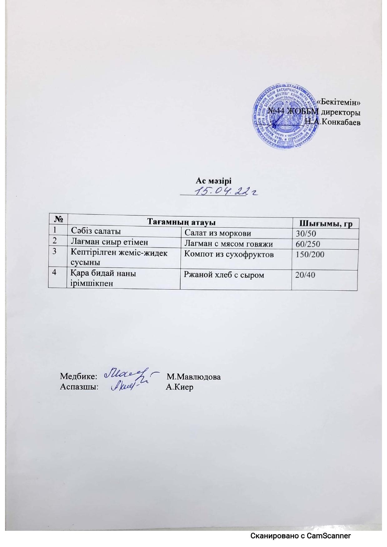14 сәуір 2022 Ас мәзірі