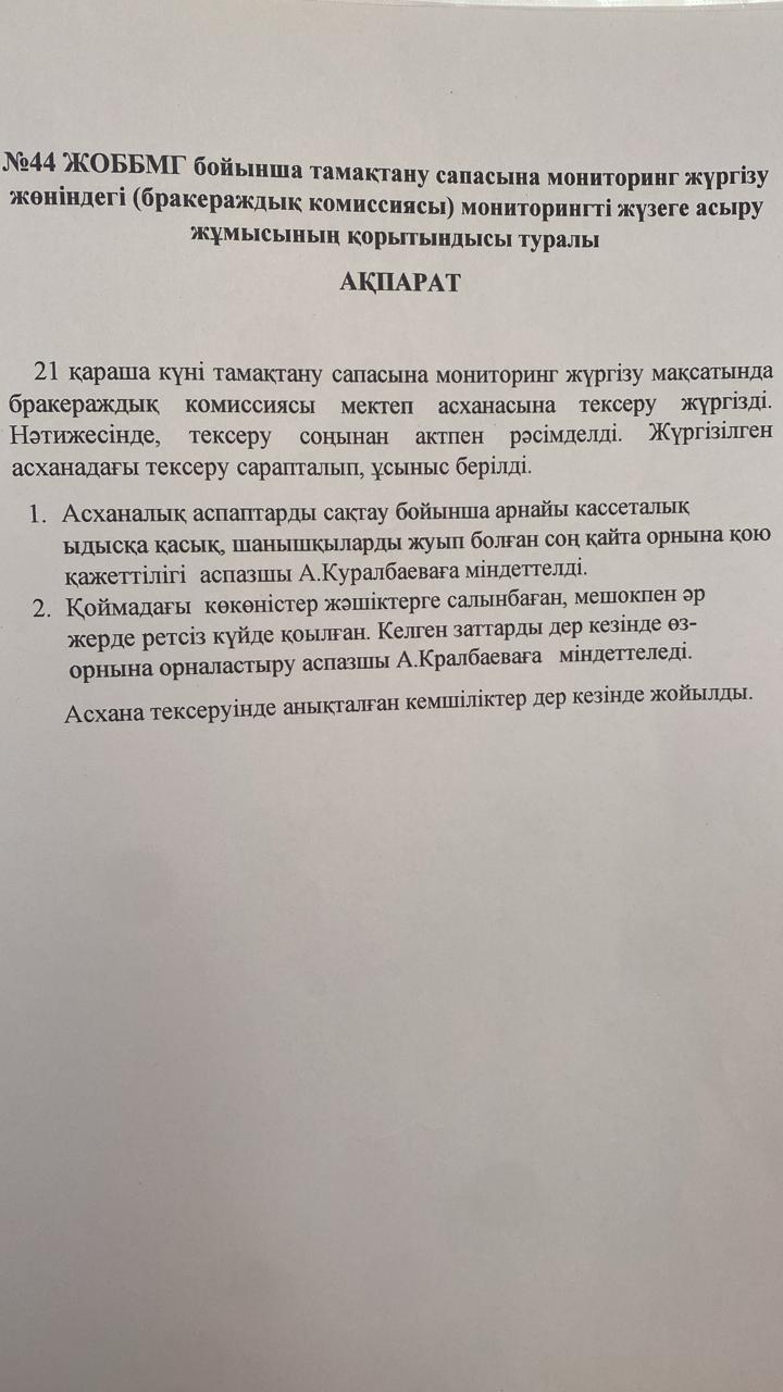 Мониторингті жүзеге асыру жұмысының қорытынды ақпараты » СШ №44 Плодосовхоз