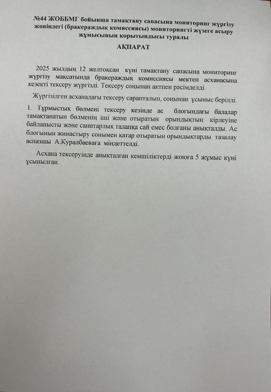 Бракеражды комиссия » СШ №44 Плодосовхоз